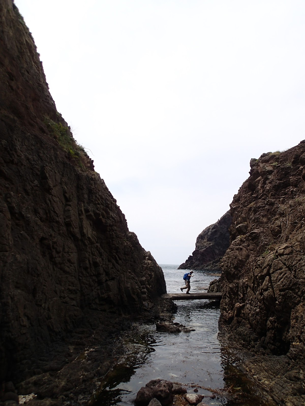 | 国賀海岸へおりてきた。あの通天橋に行ってみようか。 |