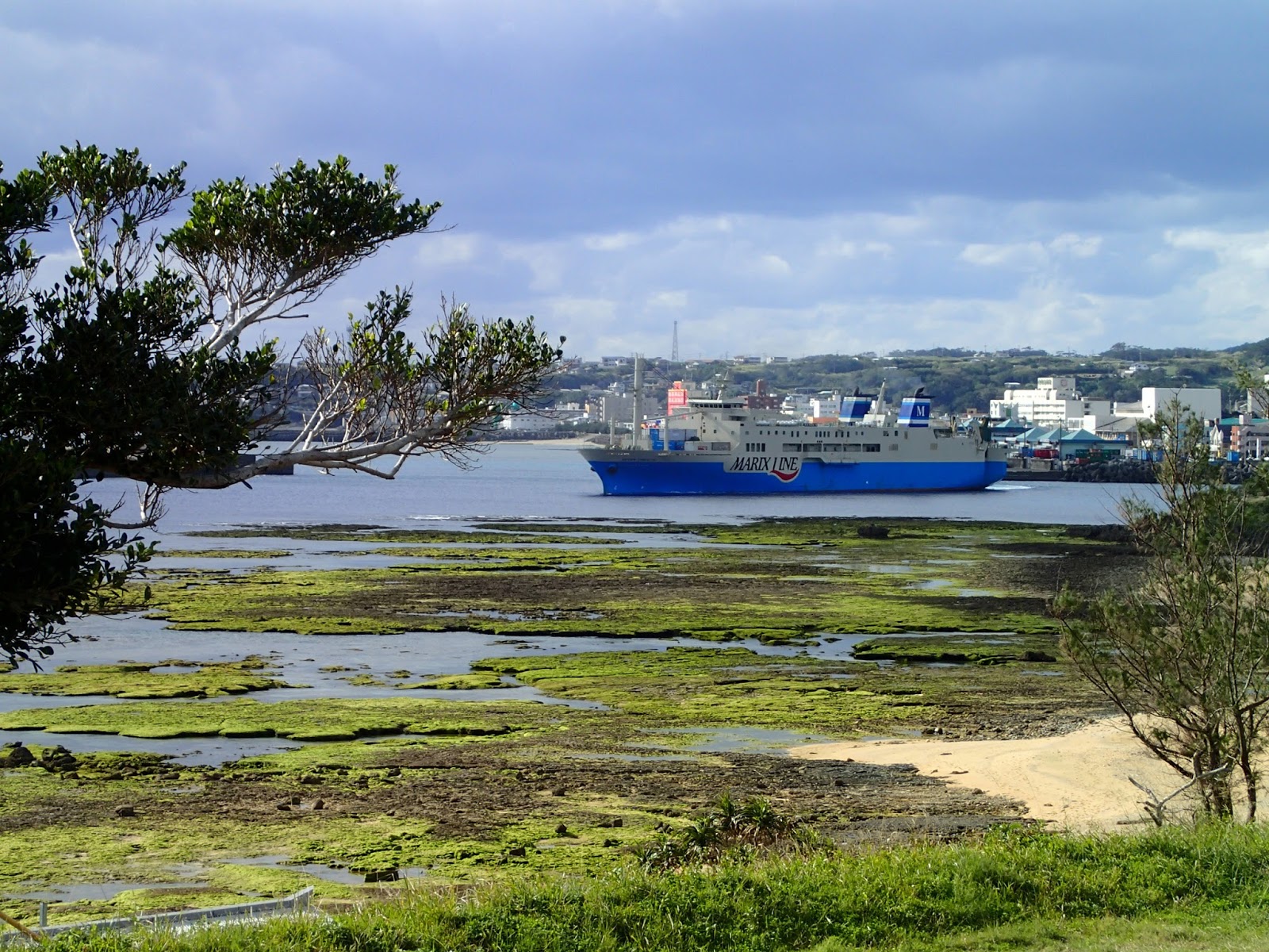 徳之島の亀徳港から出航するとき、船はバックして船を切り返してから出て行きます。