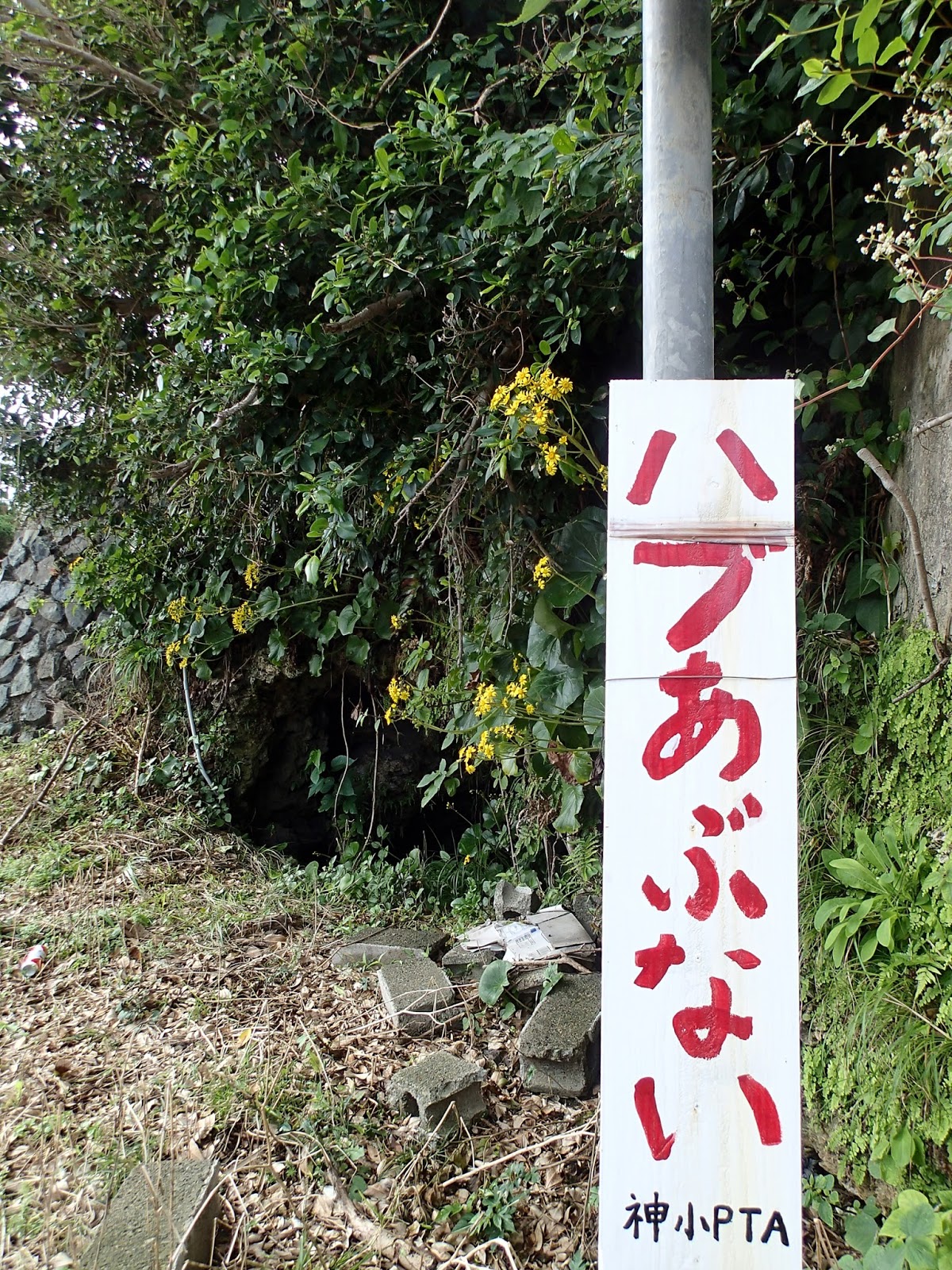 | 朝潮像のちかくの看板 ハブはホントコワイ! |