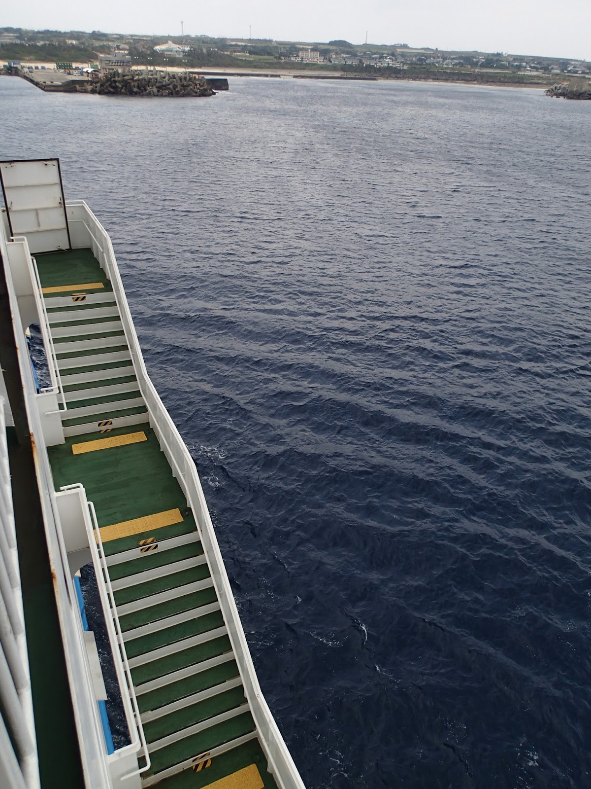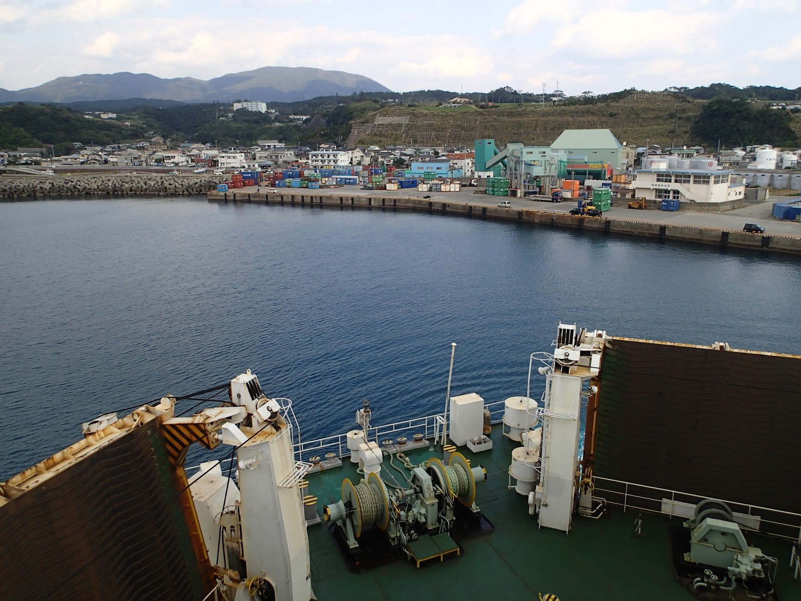 徳之島の亀徳港から出航するとき、船はバックして船を切り返してから出て行きます。
