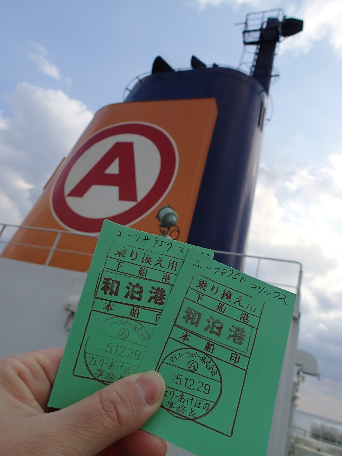 私は港の窓口へ、旦那は松山スタンドのおばあちゃんの所で清算し、同じ車で港に来て乗り捨てです。