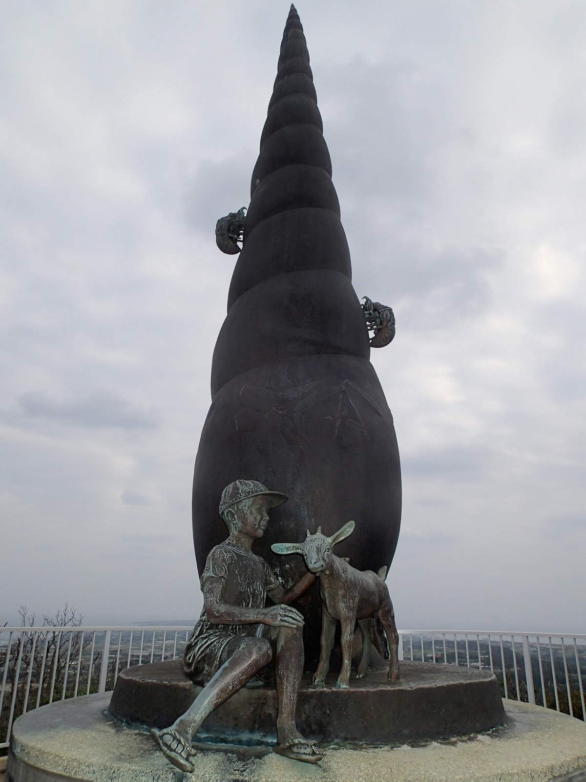 ココが沖永良部の島の形が良くわかる展望台になっていました。 貝&蝉&ヤギ&子供の像があります。