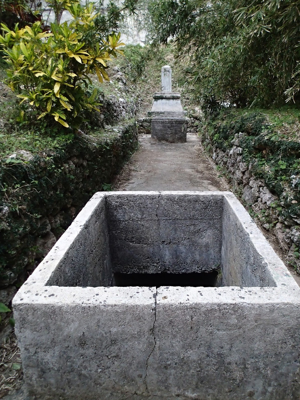 2つ目の門から中を見ると石をくり貫いた水場が |