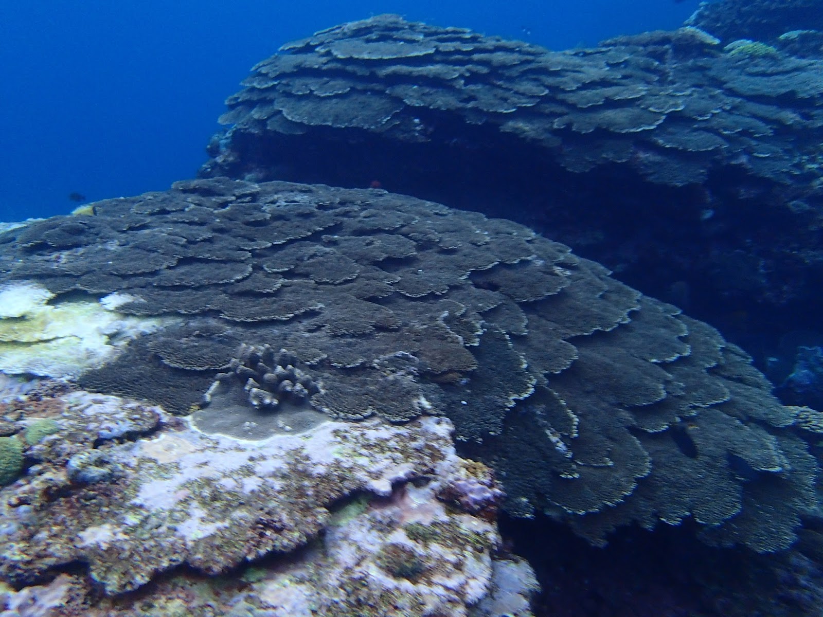 魚の群れはあまりないが、大きなマグロが2匹回遊してきた。そんな楽しみなポイント。リーフエッジの落ち込みがけっこう深いのも好み。