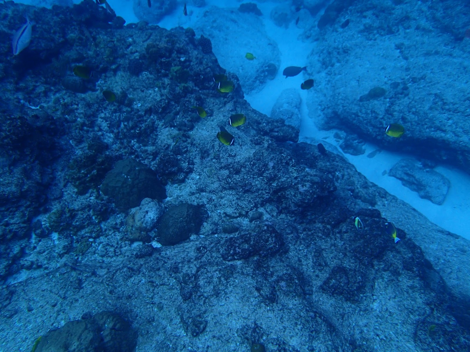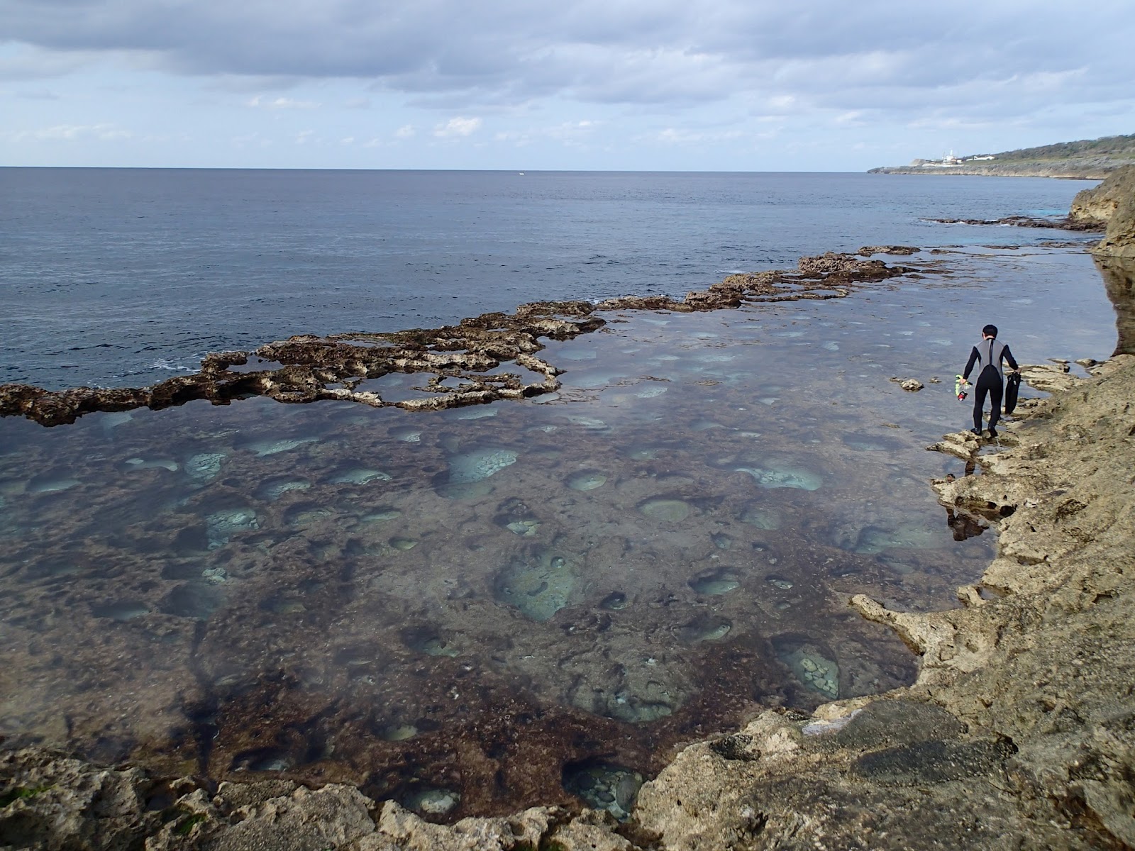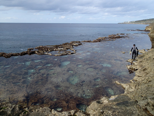 私は待っている間に海に降りる坂道の横の岩のくぼみの魚を見たりしていました。