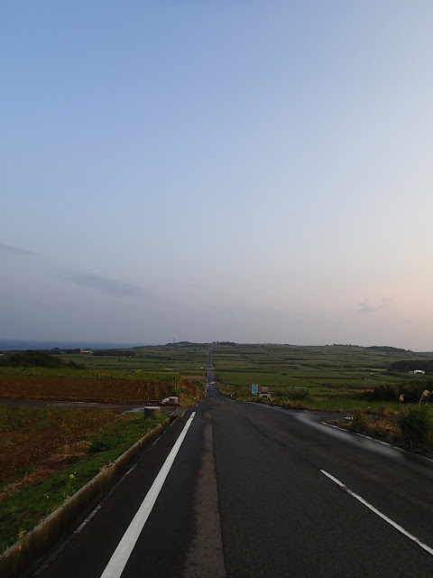 サトウキビ畑の中の一本道。