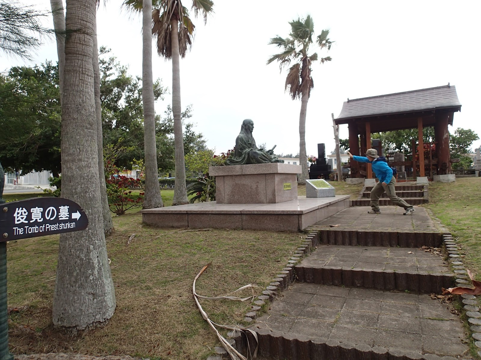 俊寛!そうあの俊寛!硫黄島の俊寛は「まってくれポーズの俊寛」ですが、喜界では座っていました。とりあえず隣で硫黄島ポーズをキメテみましたよ。