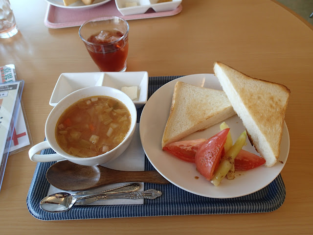 このソラマメのスープがとても美味しい♪スイーツも3セット食べた。