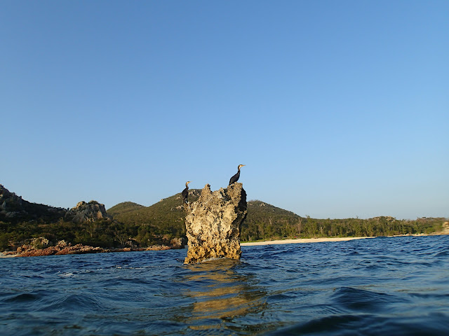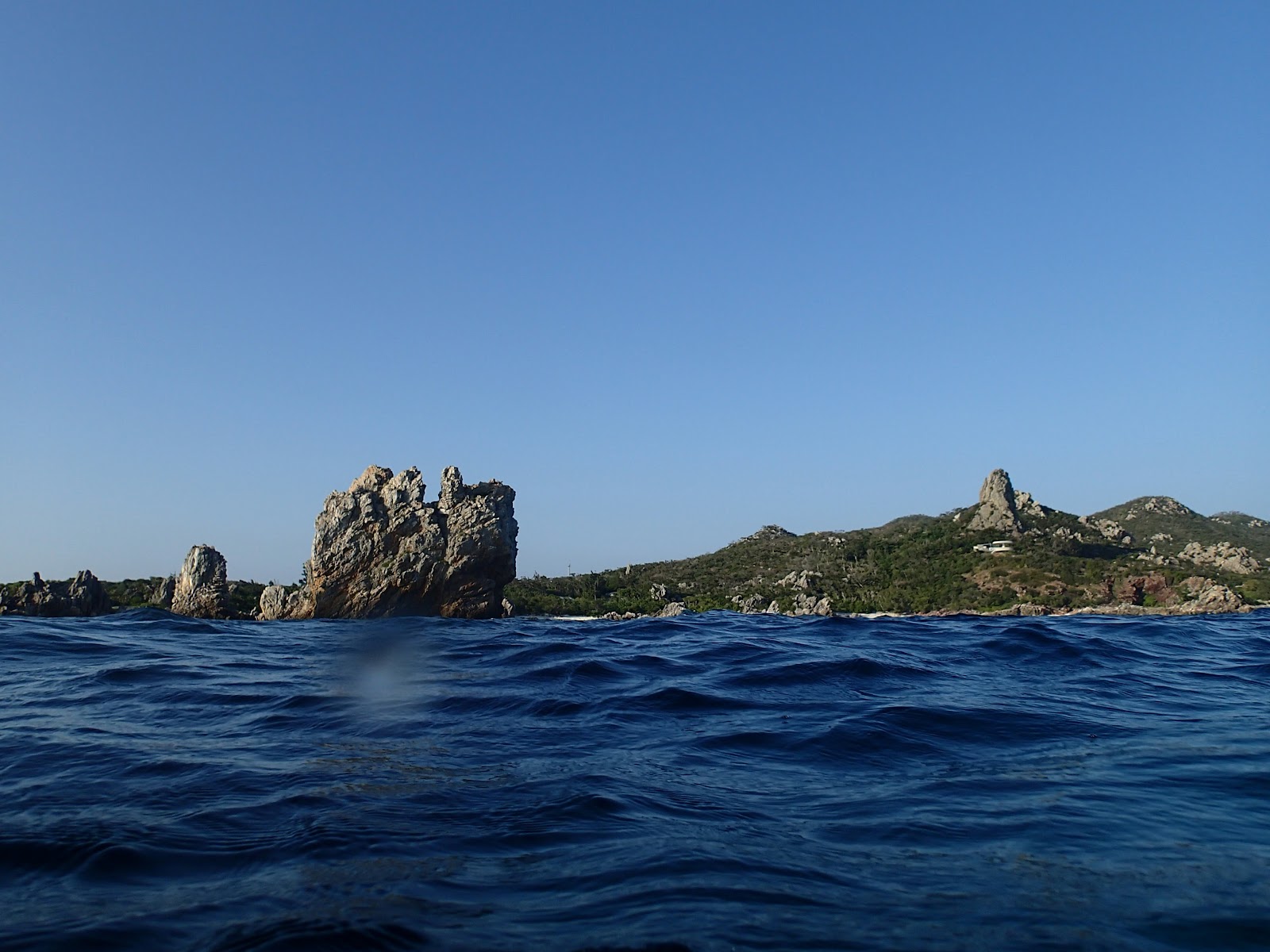 島の南のほうの森があるところから泳ぎました。島の人からここが一番良いと教えてもらいました。