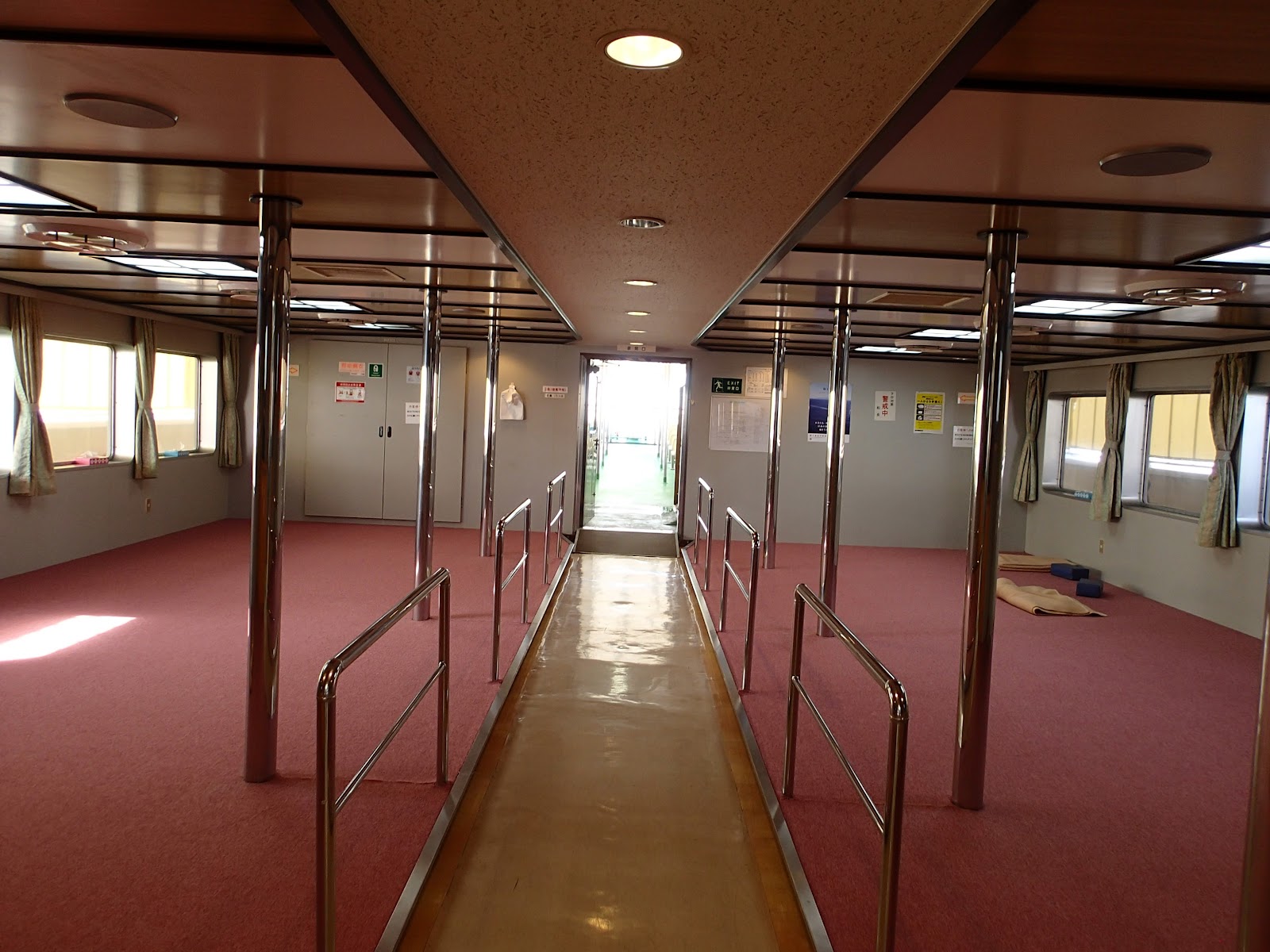| 船内は椅子と雑魚寝スペースがありました。 |