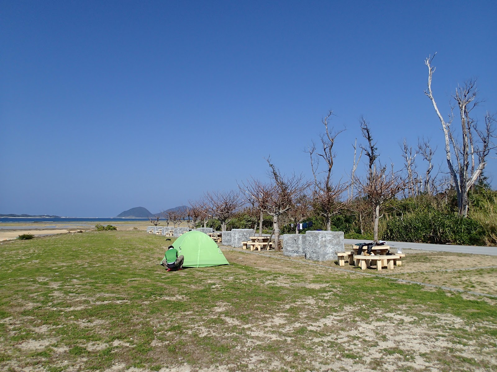 伊是名島にはキャンプ場が何箇所かありますが、そのうち一箇所は工事中でした。新しいシャワーやトイレを立てているところでした。