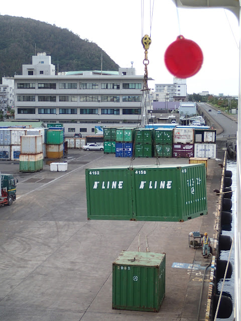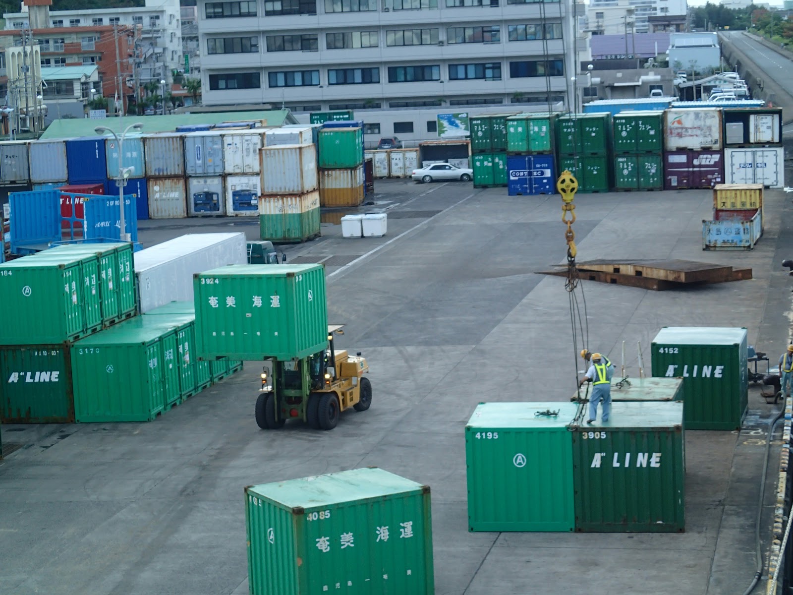 フェリーとしまが着いたのは名瀬といっても、メジャーなほうの新港ではなく、その向かい側の佐大熊岸壁という場所だ。地図をみると名瀬港は大きくUの字になっていて、そのUの向かい同士に位置している。