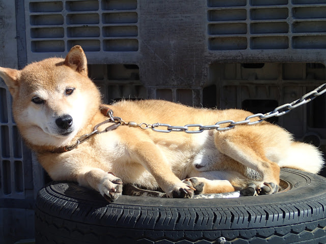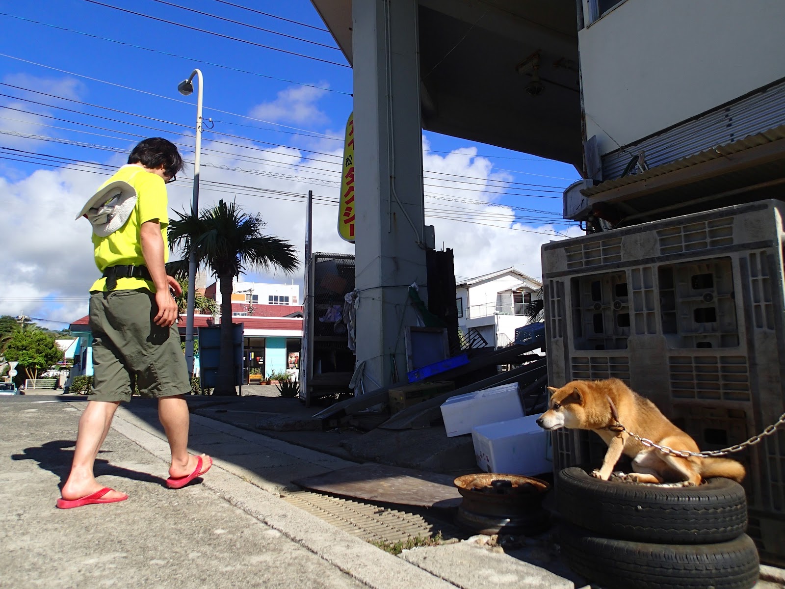 最終日の朝、松山レンタカーへ。建物の横に看板犬がいた!そして地たまごも販売していた!なんでもやってるよ!