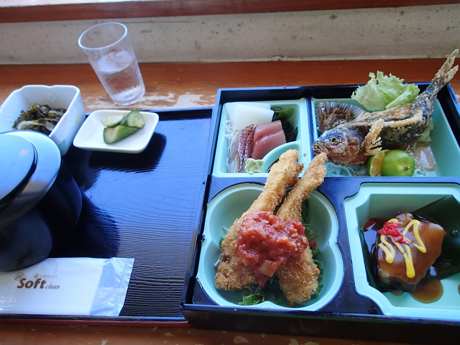 冬に来た時、沖永良部がどの店も美味しくて、今回も食べまくるぞー!と気合を入れて上陸したのですが、真夏の旅がどんどん私たちの胃腸を弱らせて行き、美味しくたらふく食べられたのはこの昼まででした。本気の夏バテです。次の日からお昼ご飯は直売所で買ったゴーヤーをかじっていました。ゴーヤー以外食べれなかったです。