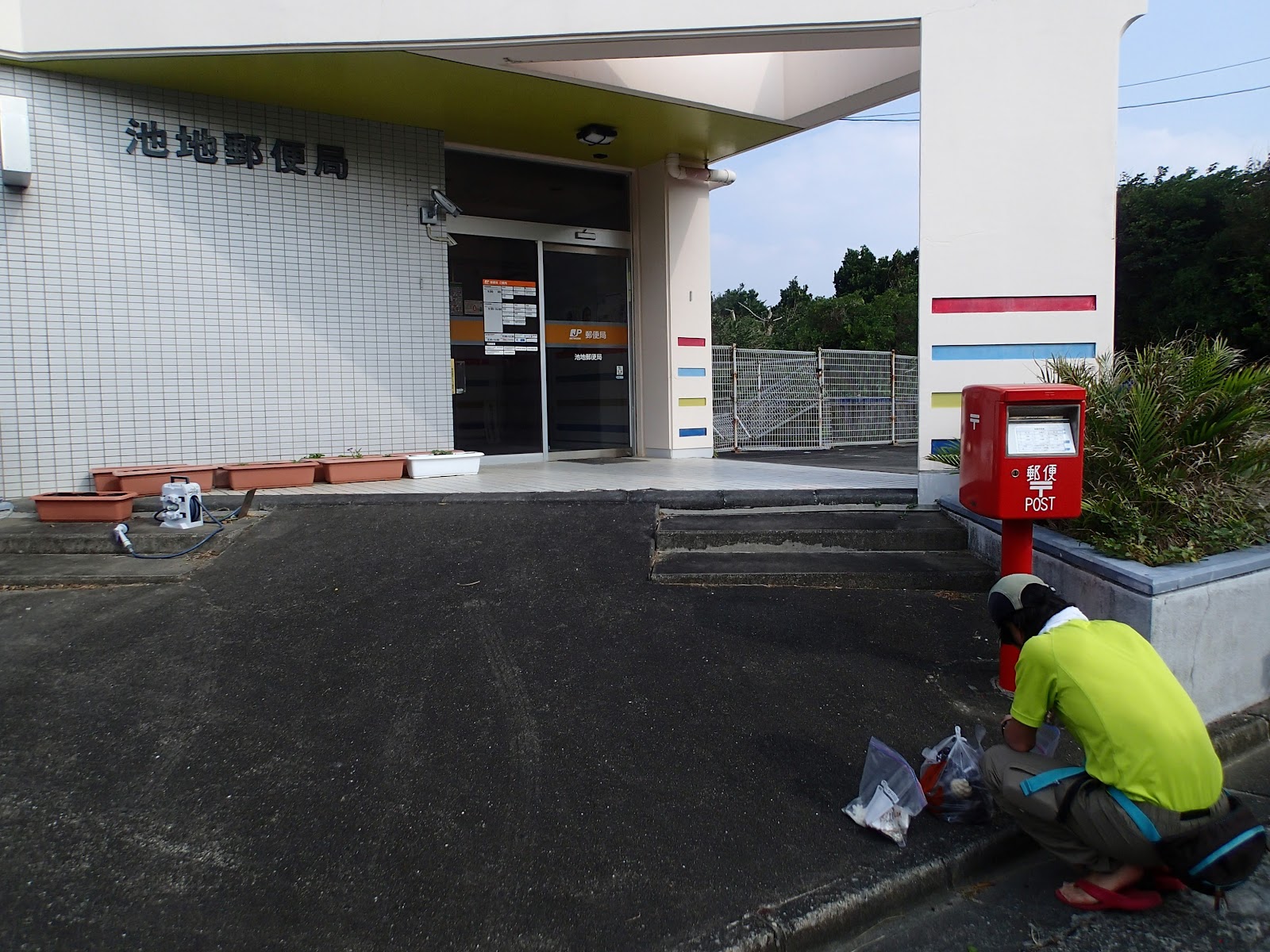 お昼を食べ、午後いちで郵便局へ拾った貝殻を送りに行きました。