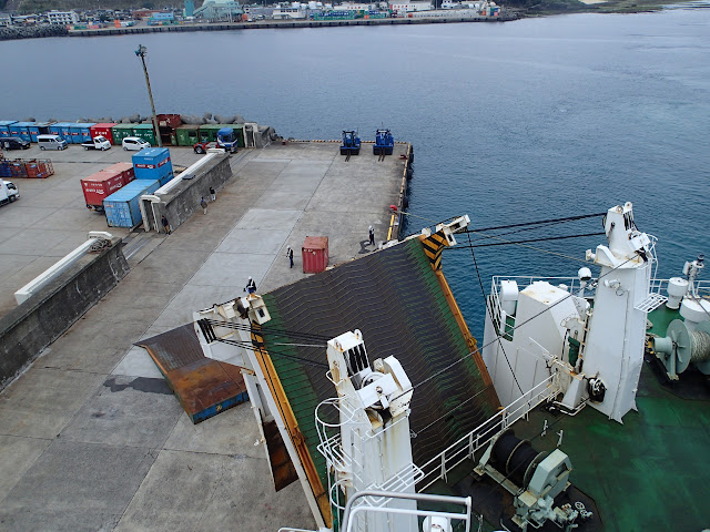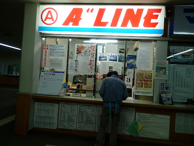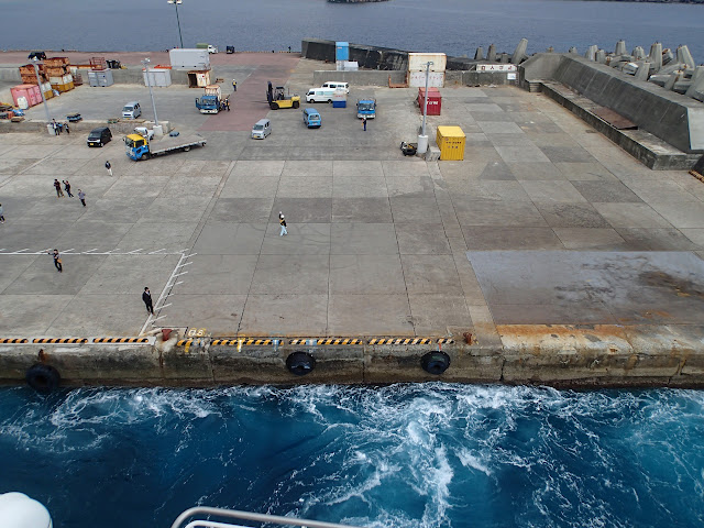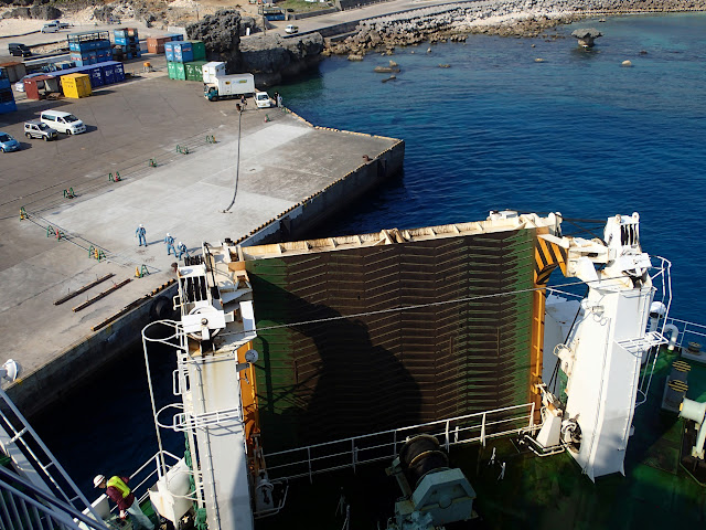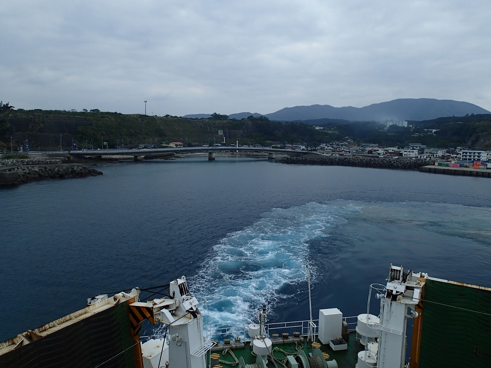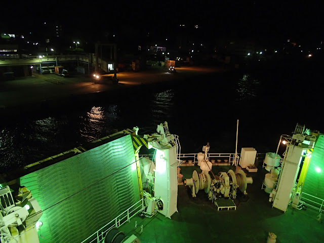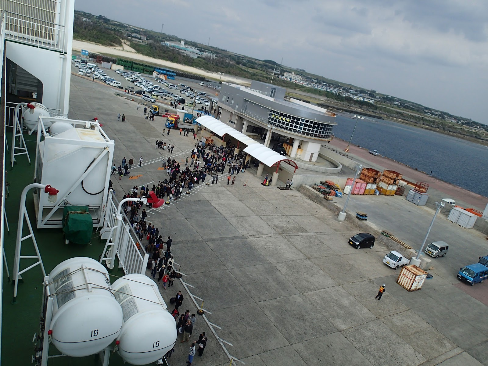 切符を買い終わってすぐ外に出ると、フェリー波之上が入港してきたところでした(4時40分頃)。