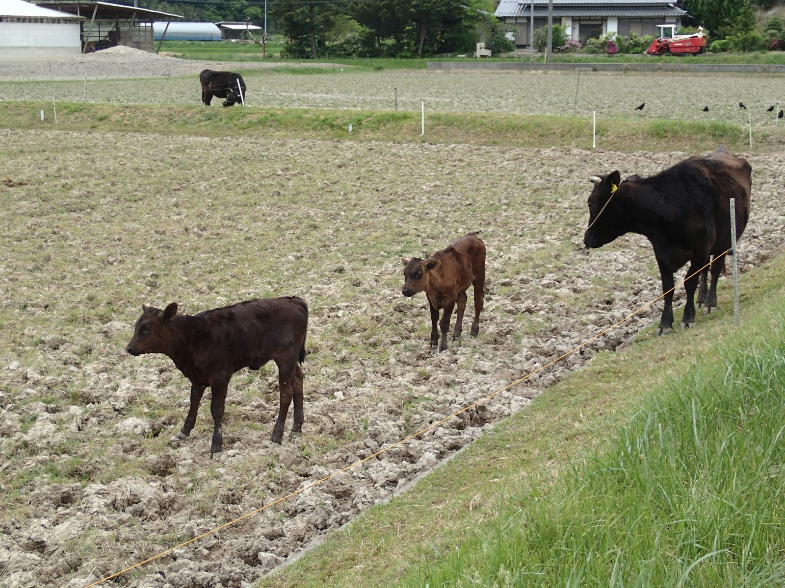 ここは隠岐牛を育てている農家レストランだ。お店のまわりには隠岐牛がいっぱいいました。