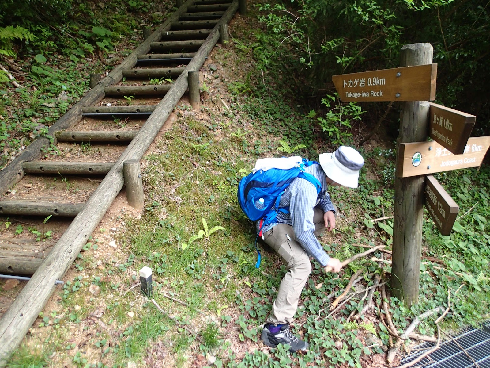 | トカゲ岩登山口にマムシ棒が置いてありました! |