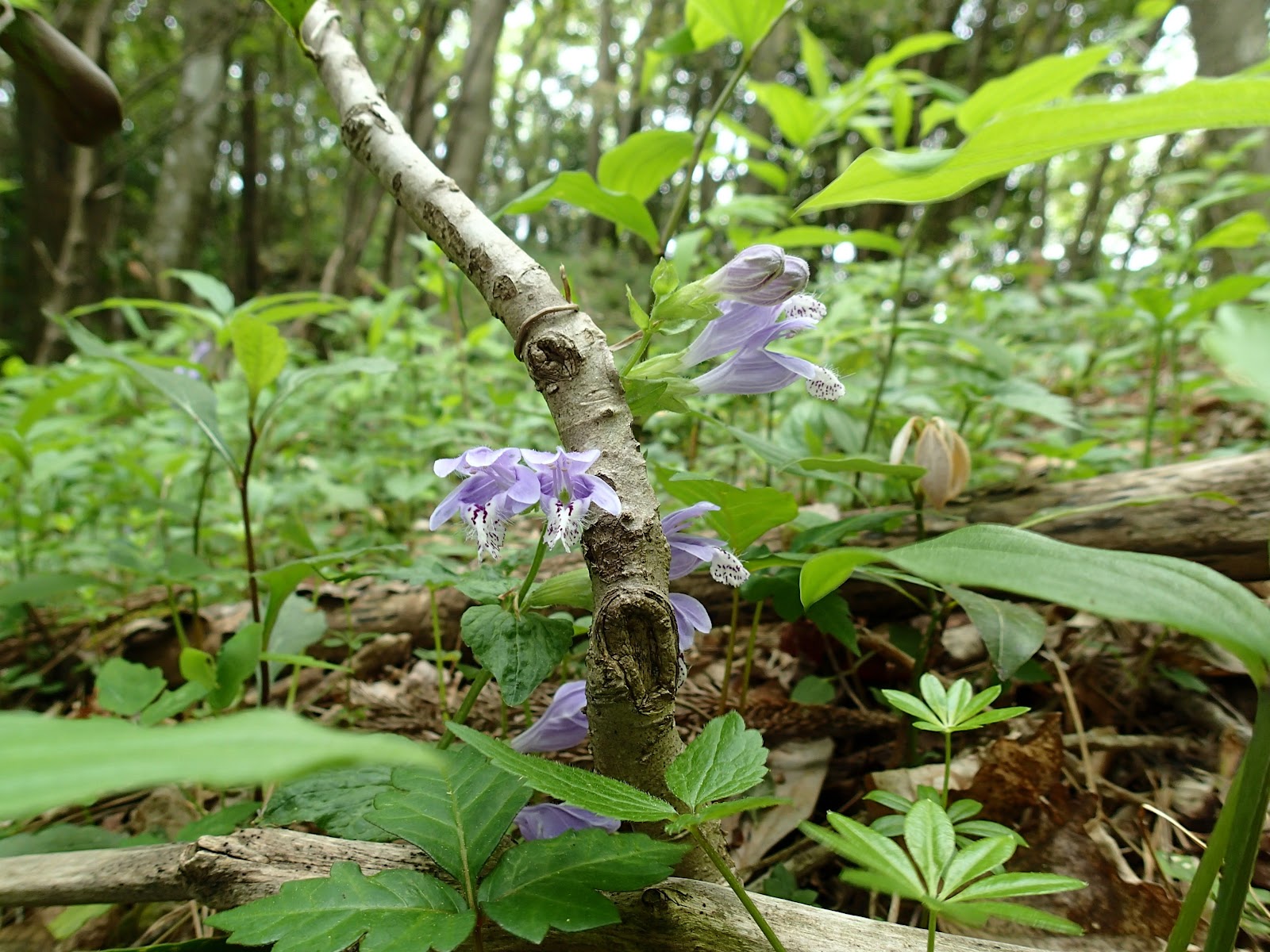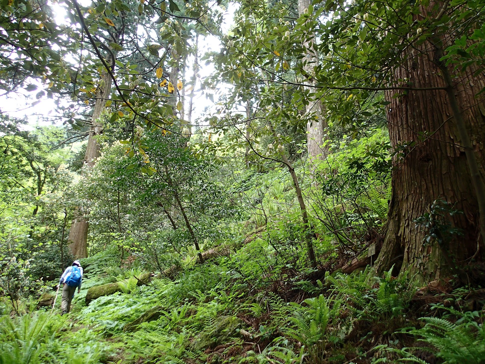 下りは来た道とは違う道で。トカゲ岩分岐から神原高原へ、そこから天然林を下ってスタート地点に戻りました。