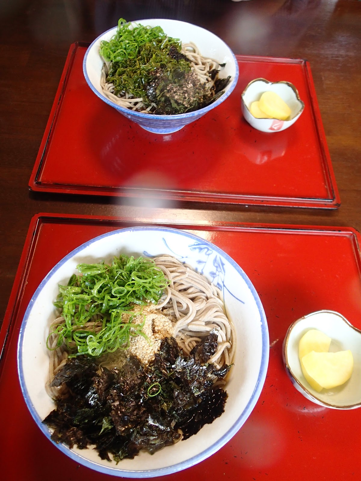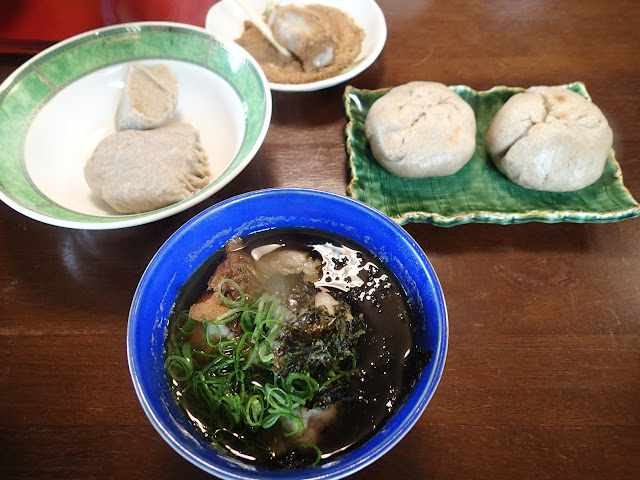 私たちは、隠岐大盛(温)、めかぶそば大盛(冷)を頼み、さらに気になる『やきもち』『しるだんご』『だんご』も食べることにしました。