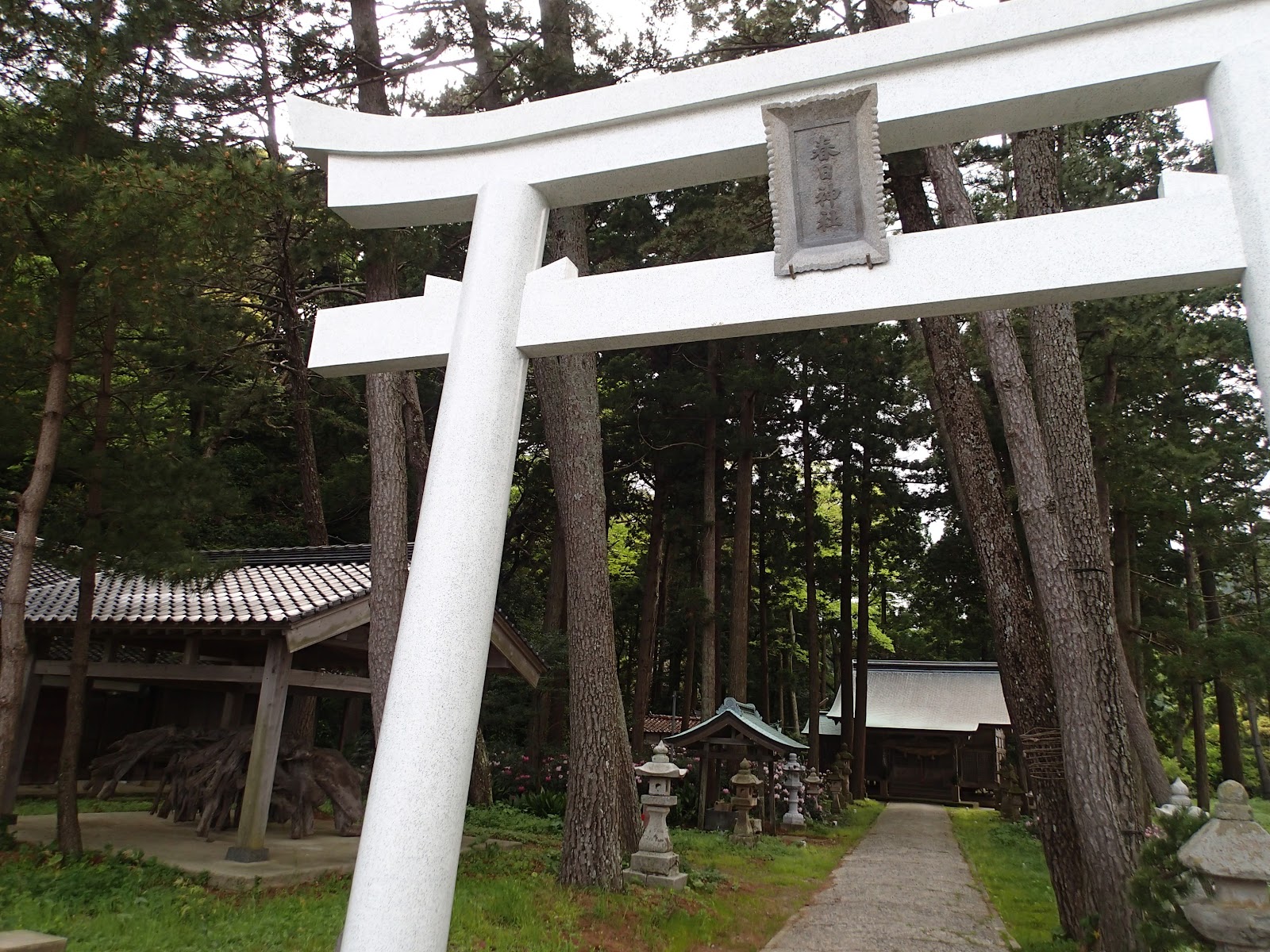 | 春日神社に大きな木の根が見えた |