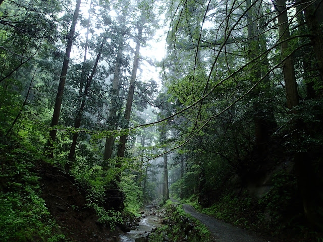 | 滝の裏から見上げたところ 滝なんだか雨なんだか |