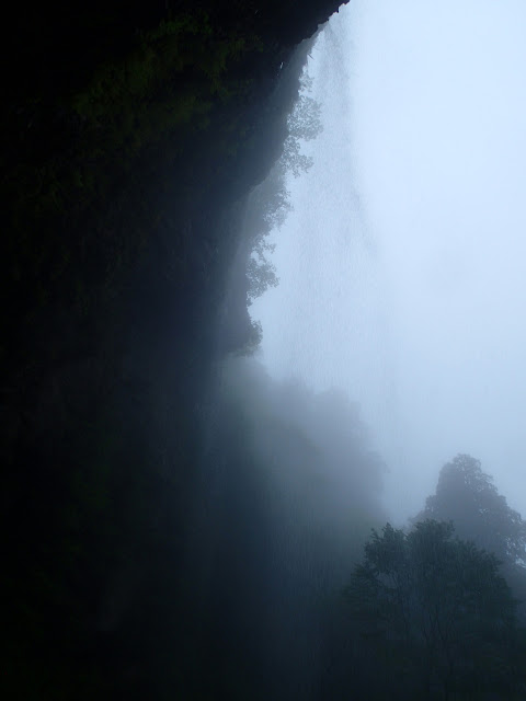 滝の裏から見上げたところ 滝なんだか雨なんだか |