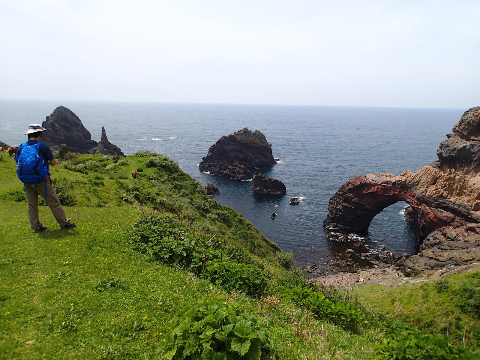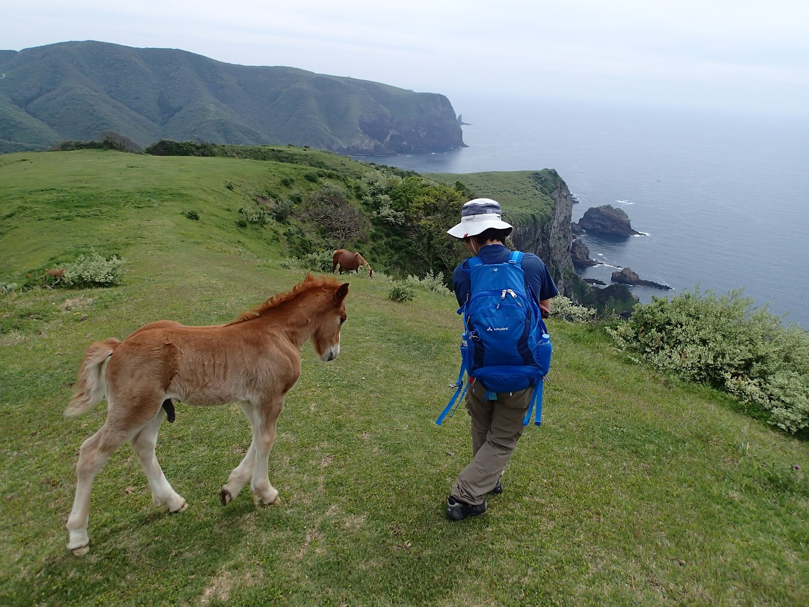 ここも牛や馬がいっぱいいるのかと期待して行きましたが、ほとんど出会えませんでした。ただ、国賀海岸から摩天崖が良く見えます。