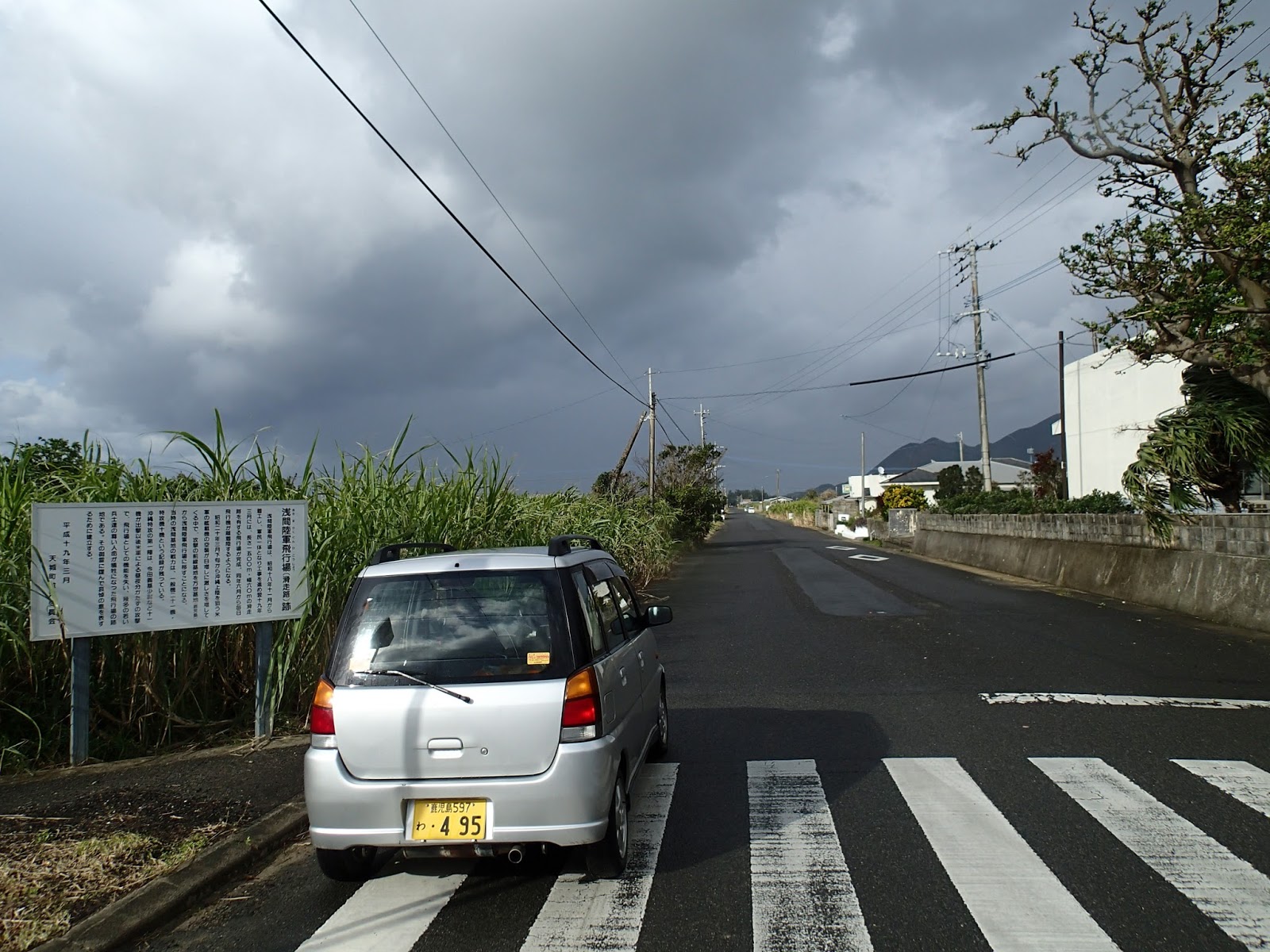 空港の近くには特攻平和慰霊碑があり、滑走路に使われていた道路があります。