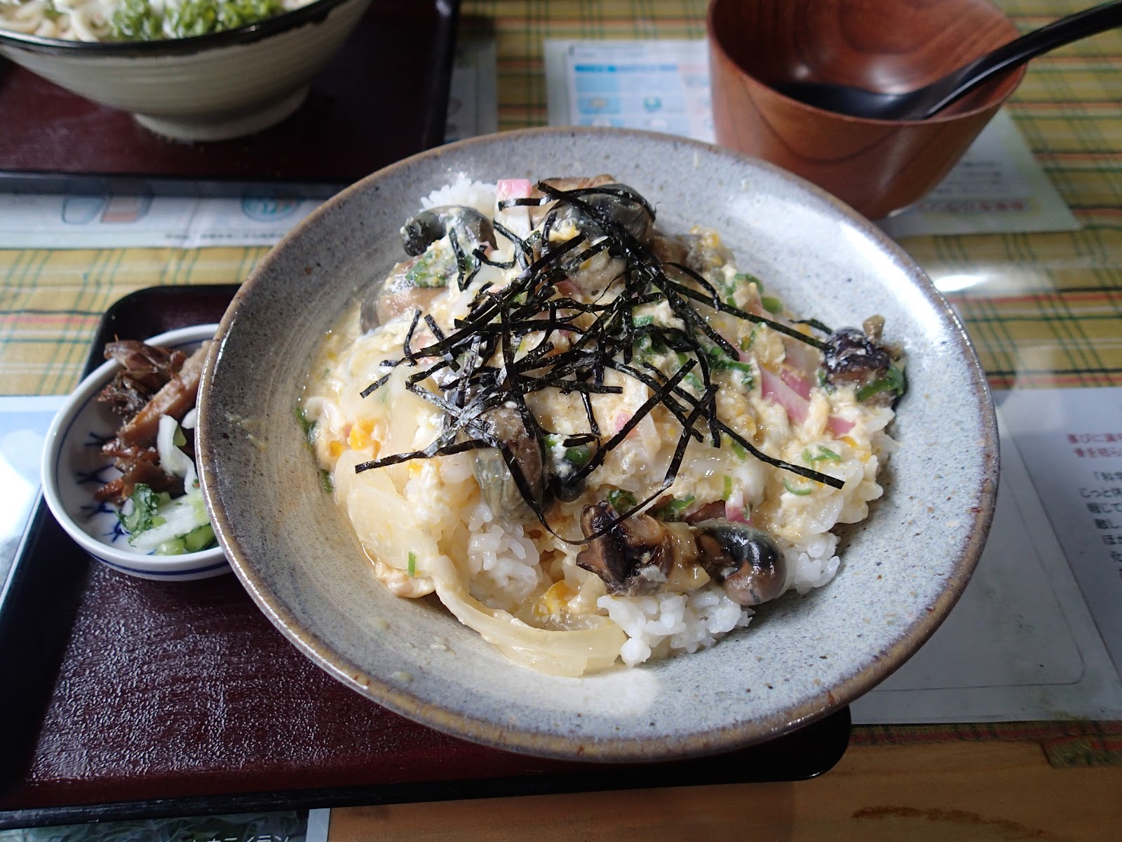 夕食は中村の『あじゅまや』でサザエ丼とめかぶうどんを。